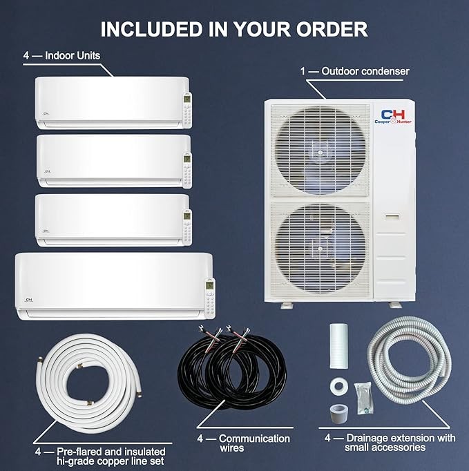 Cooper & Hunter 48,000 BTU Quad 4 Zone 9000 12000 12000 24000 BTU Multi Zone Ductless Mini Split Air Conditioner Heat Pump Full Set with 25ft Installation Kits