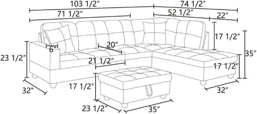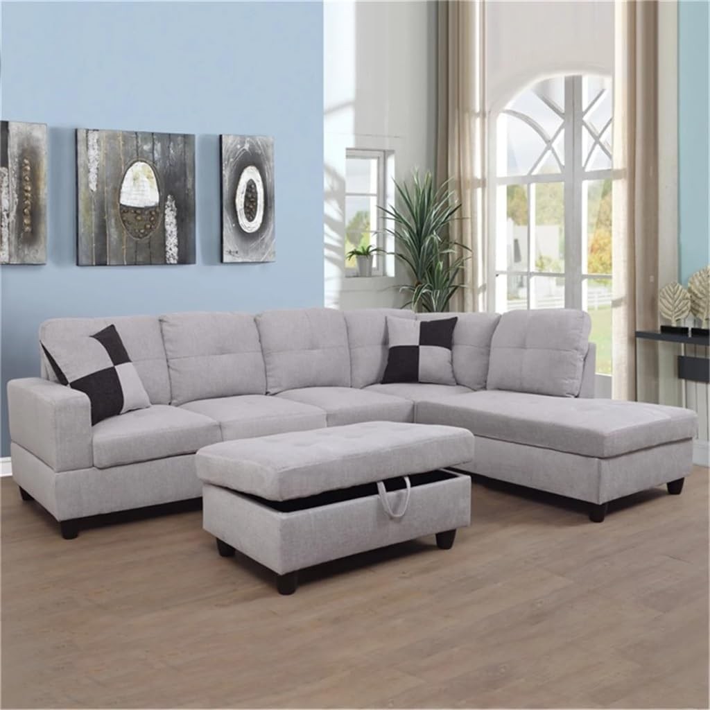 • The Flannel Sectional Sofa Set features a thick seat cushion and fluffy cushions to help you relax as much as possible. The Flannel Section Sofa Set is for living rooms, conference rooms, hotels, bedrooms, offices, home theaters, and other places