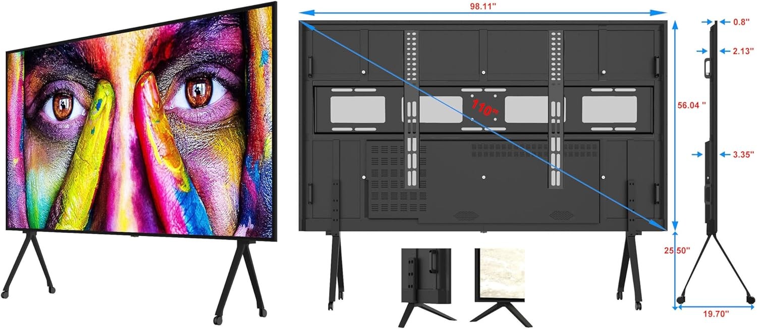 110 Inch UHD LED Smart TV, 4K Screen Television with Mount & Stand TS110TV High Resolution LCD Screen 16:9 Indoor Cinema with Anti-Glass WiFi, HDMI, USB Ports