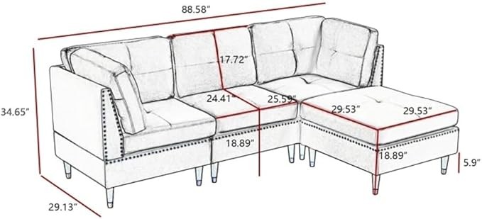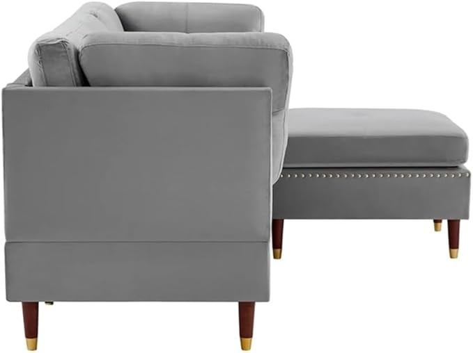 Sectional Sofa Couch with Ottoman, L-Shaped Couch with Nail for Apartment and Living Room.
